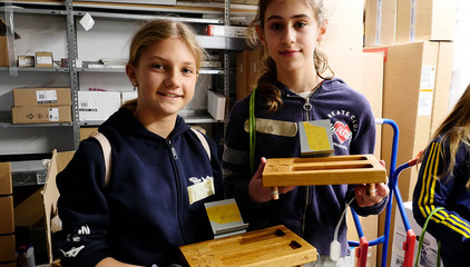 Am bundesweiten Zukunftstag – dem Girls' Day und Boys' Day – hat Werkstück am 23. April zehn Schülerinnen aus verschiedenen Berliner und Potsdamer Schulen spannende Einblicke in die vielfältigen Aufgaben eines handwerklichen Berufs ermöglicht. Einen Tag lang konnten die Teilnehmerinnen im Alter von 11 bis 14 Jahren folgende Berufe ganz praktisch erleben: Klempner:in, Anlagenmechaniker:in, Maler:in und Lackierer:in sowie Elektroniker:in. Nach einer Einführungsrunde mit dem Geschäftsführer von Werkstück, Kay-Uwe Sorgalla, und der Referentin für Personal und Ausbildung, Jessica Paul, sowie einem kleinen Frühstück ging es direkt in die Werkstätten. Dort konnten die Mädchen unter Anleitung unserer Auszubildenden Wadim (Anlagenmechaniker), Jean (Malerin und Lackiererin), dem Bauleiter Dachbau und Klempnermeister Marco Marchesan sowie dem Mitarbeiter Steve Eick (Elektrobereich) ihr handwerkliches Geschick unter Beweis stellen. Die Schülerinnen bauten ihre eigene Schreibtischablage mit Handyhalterung und Beleuchtung. Sie probierten sich dabei an unterschiedlichen Stationen an den Werkbänken aus, etwa beim Löten, beim Biegen und Schneiden von Metall und dem Anbringen einer LED-Leiste. In der Malerwerkstatt wurde das Holz lasiert.