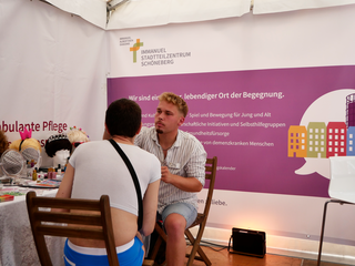 Auch von anderen Akteurinnen und Akteuren wurde der Stand der Immanuel Albertinen Diakonie sehr gut wahrgenommen: die LSU, die Grünen, AHA-Berlin e.V. und die Schwulenberatung Berlin, deren Geschäftsführer den Stand zweimal besuchte. Die Präsenz beim Fest wurde als Nachweis unserer Werte und unserer Erklärung gegen Menschenfeindlichkeit sowie als Ausdruck von Wertschätzung und Respekt gewertet.