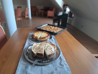 Im Hospiz erwarteten Blumen, Willkommenskarten und duftender, von Ehrenamtlichen und einer Mitarbeiterin gebackener Kuchen die Rückkehrenden.